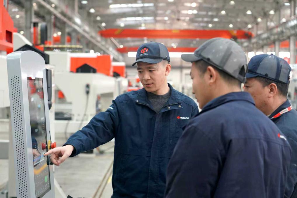 2026年1月8日,華工科技的技術(shù)人員在測(cè)試三維五軸激光加工裝備。